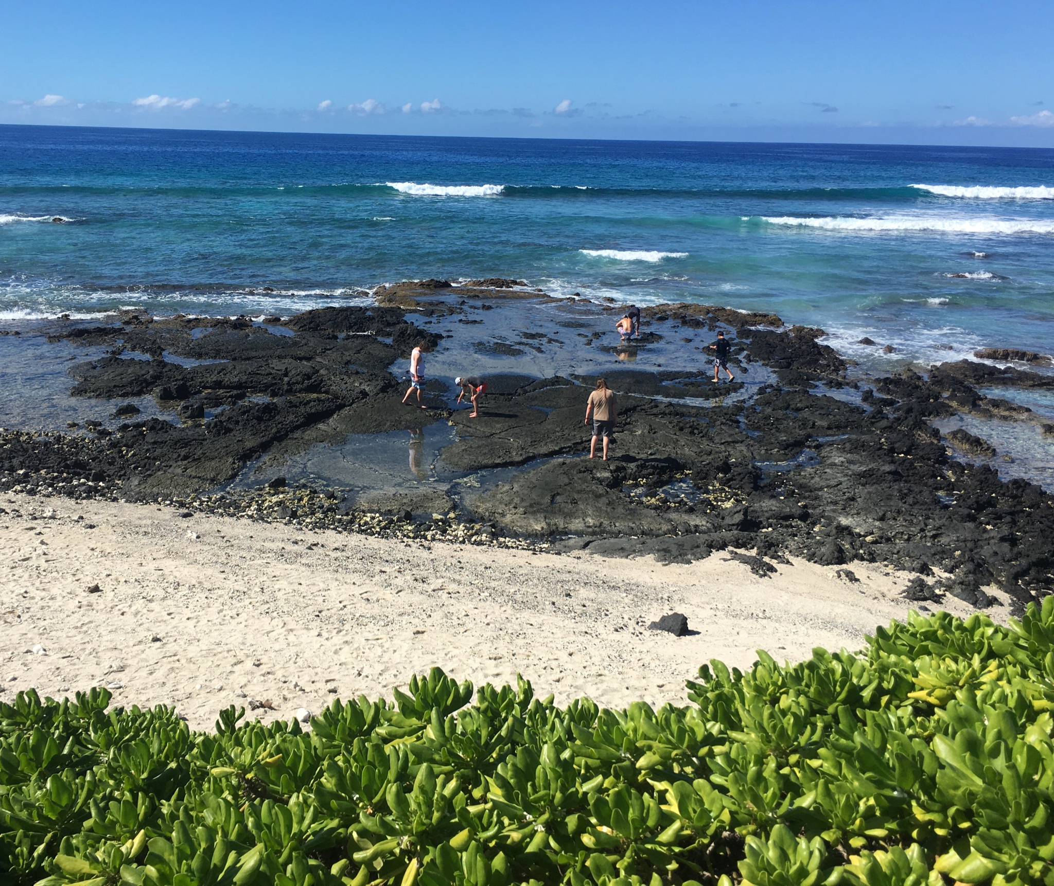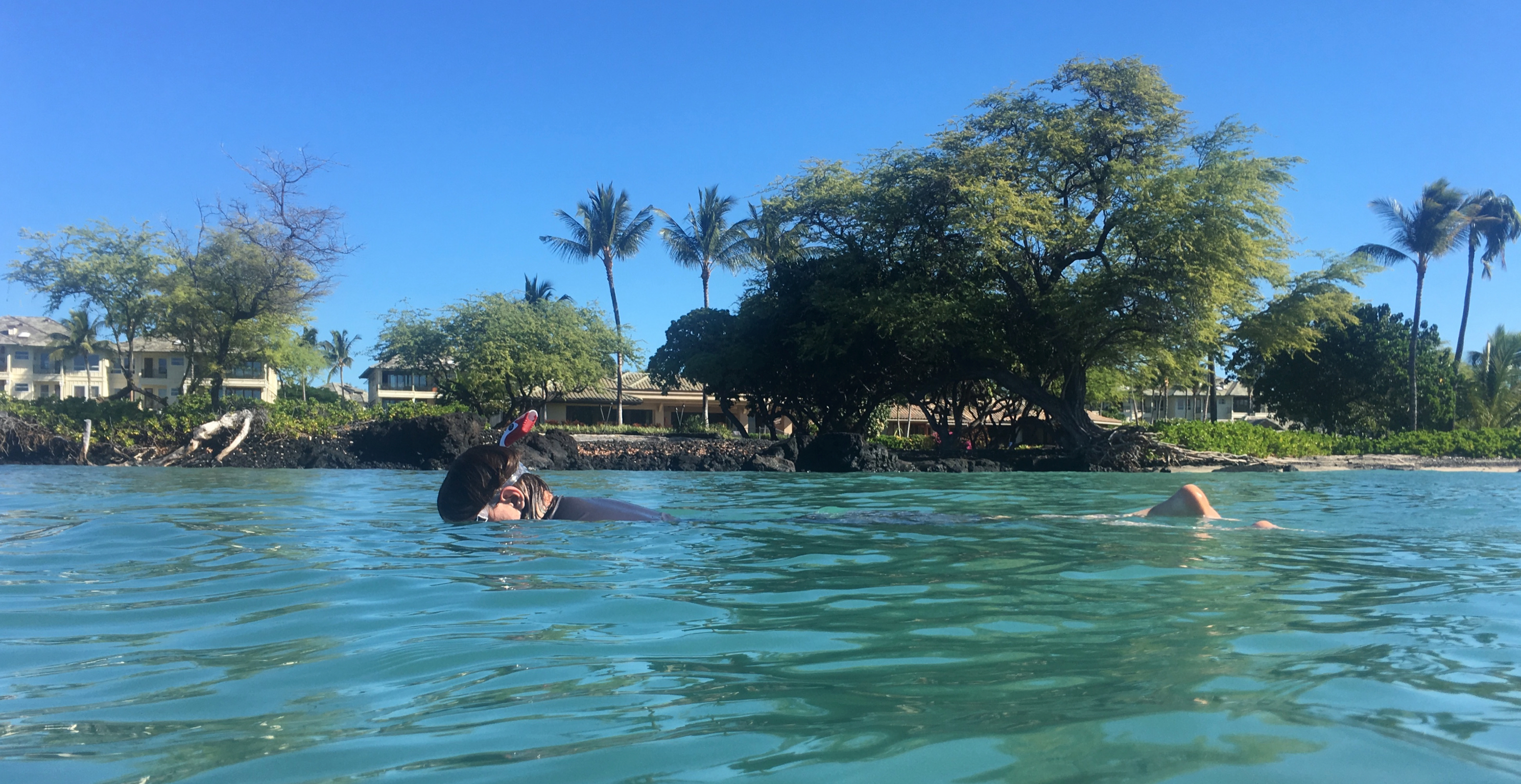 All of us were anxious to get in the water and see coral and fish. One of the nearby recommended locations was Anaehoomalu Bay. However, we had a leisurely start that morning that put us in the water just before noon. Unfortunately, the bay was not a snorkeling paradise. It had limited visibility, and a shortage of critters to observe. But the water was warm, we got all the gear checked out, and everybody had an introductory swim. So, all was good.