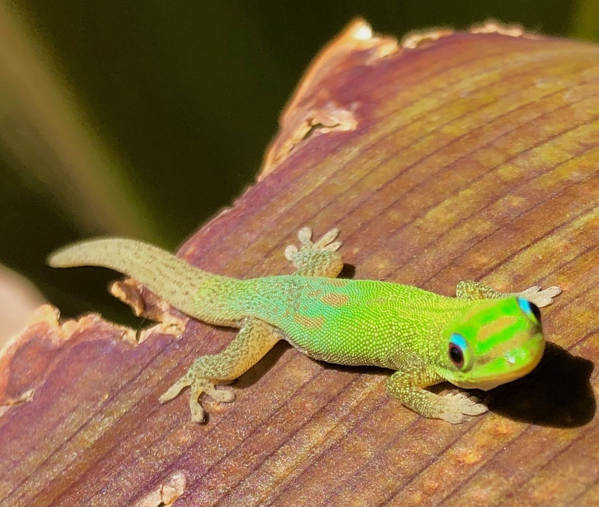 Then it was back to the condo for a quick lunch on the patio before heading over to the Dolphin Encounter. The weather was clear, sunny, and hot. We had a green gecko visit us while we ate.