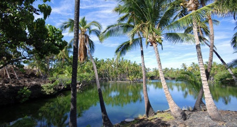 Climbing back into the Silver Whale, we drove to the access parking lot, and started the walk to the beach. The lot was for the Kalahuipua’a Historical Park – Fishponds and Trail. The walk to the beach was across a lava field, and thru an area of ancient fishponds. For some reason, all of us were struck dumb, or the Hawaiian gods rendered our phone cameras useless. Either way, we have almost no pictures of this visit. The first picture (the nice one) is from their website). The other two are from us.