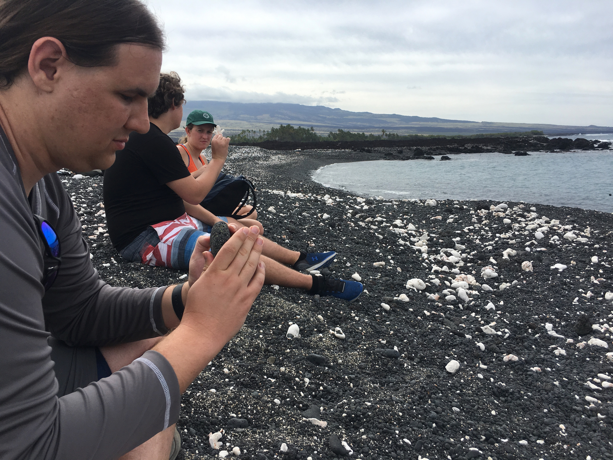 Continuing to the beach, we sat and watched the waves, looked at chunks of coral washed up on the beach, and took a group photo.