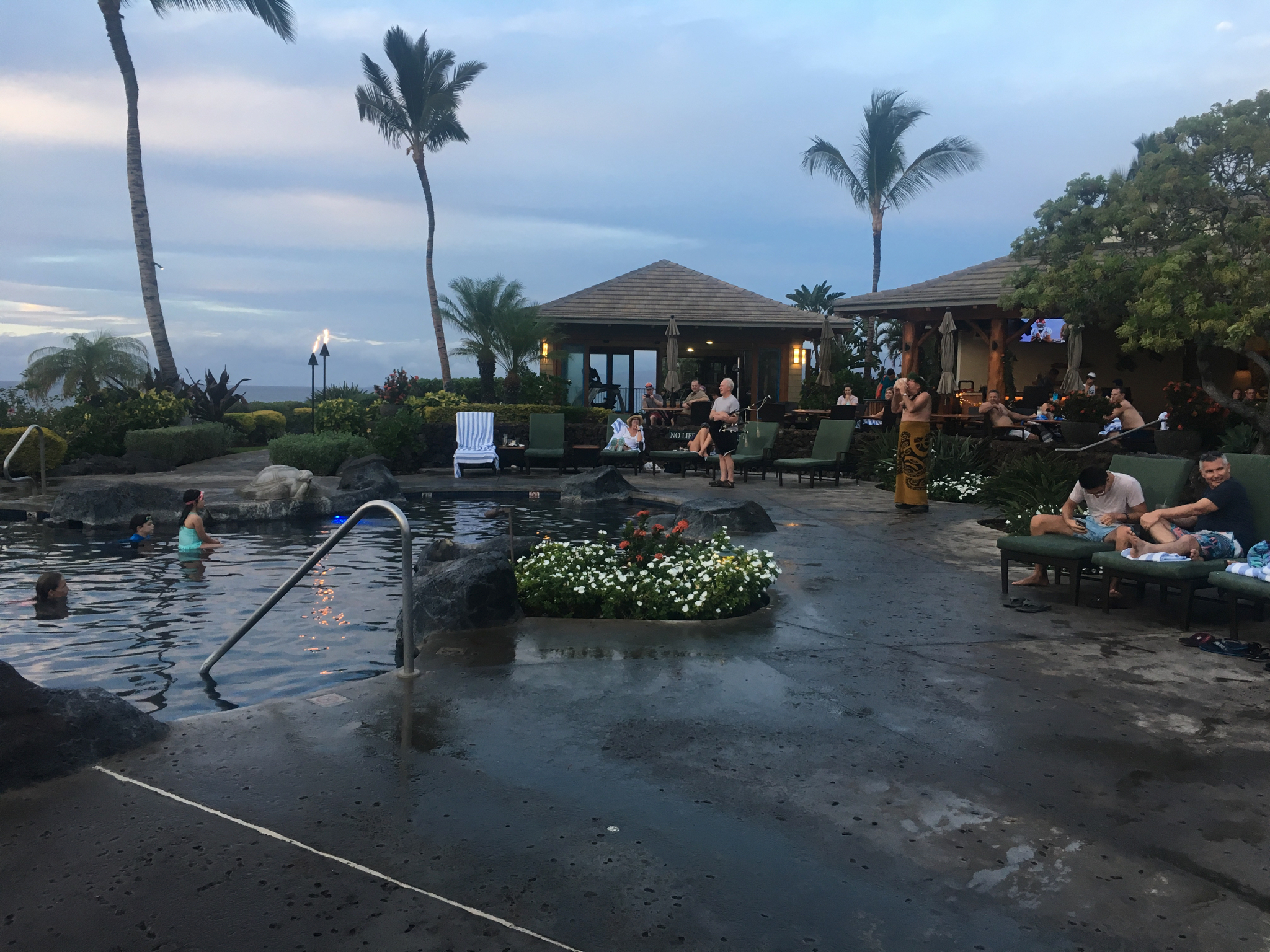 For the final act of the day, we re-grouped at the condo, and walked to the clubhouse for sunset drinks and dinner. We arrived just before the conch shell ritual (sounding the shell to the four winds), followed by the bagpipes. This was washed down with drinks of many colors, followed by a good dinner. Back at the condo, we lazed around and watched the movie Moana.