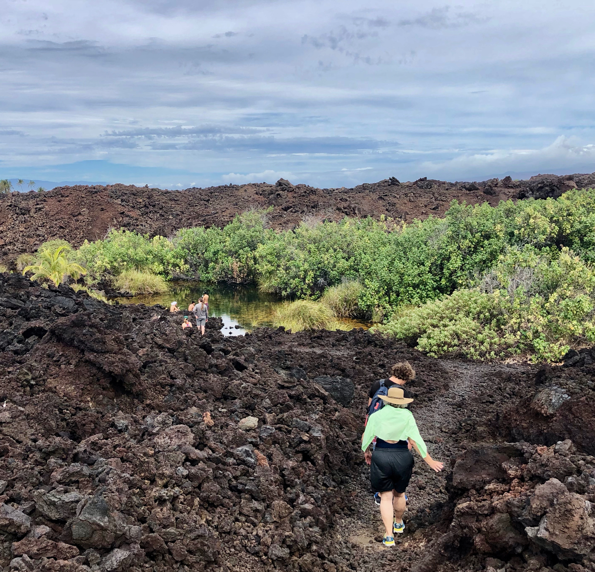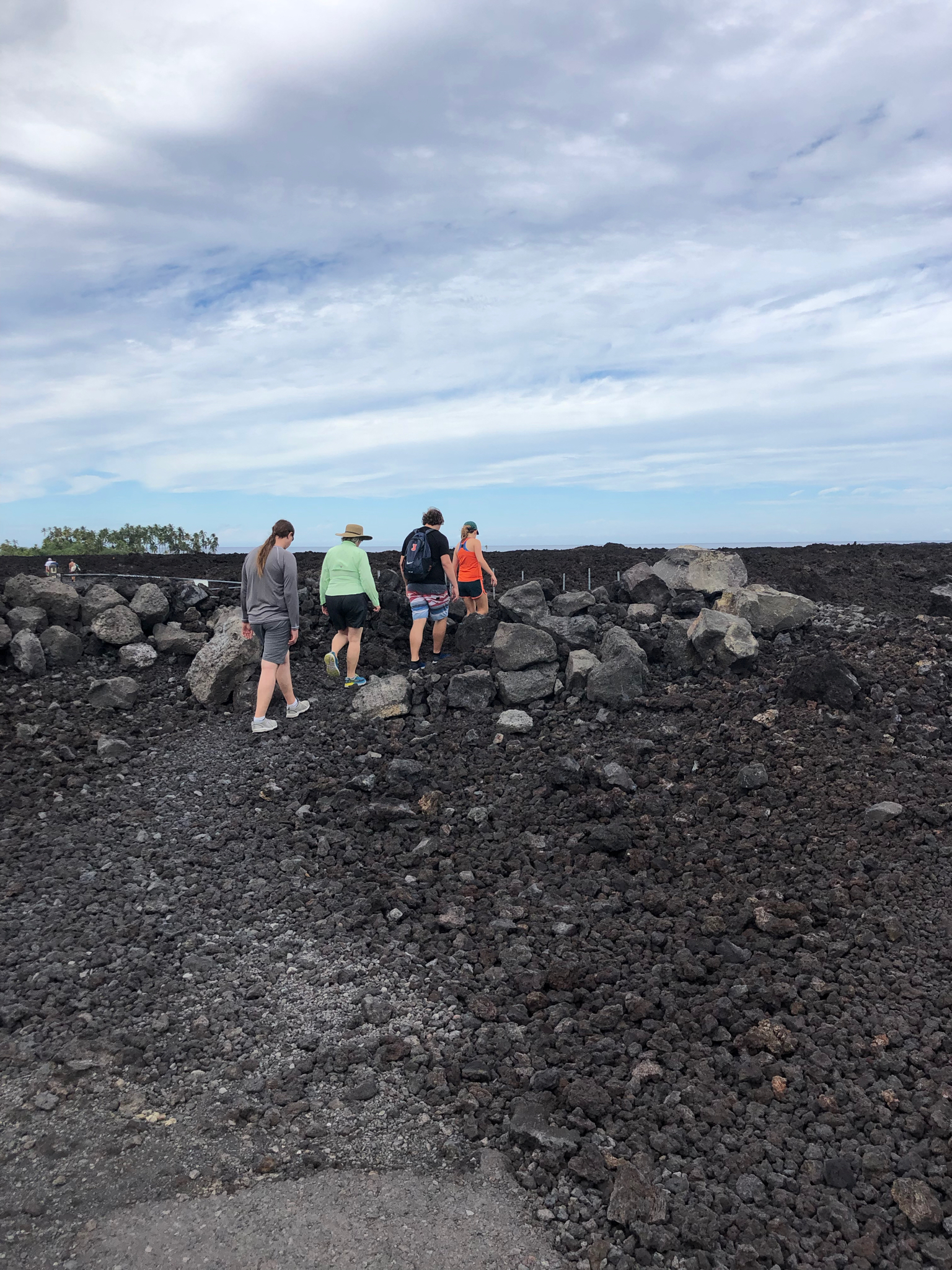 The hike back across the lava, seemed long, and we were glad to reach the starting point. You really do get tired of walking on the rocks. We had neglected to follow our own advice and bring enough water.