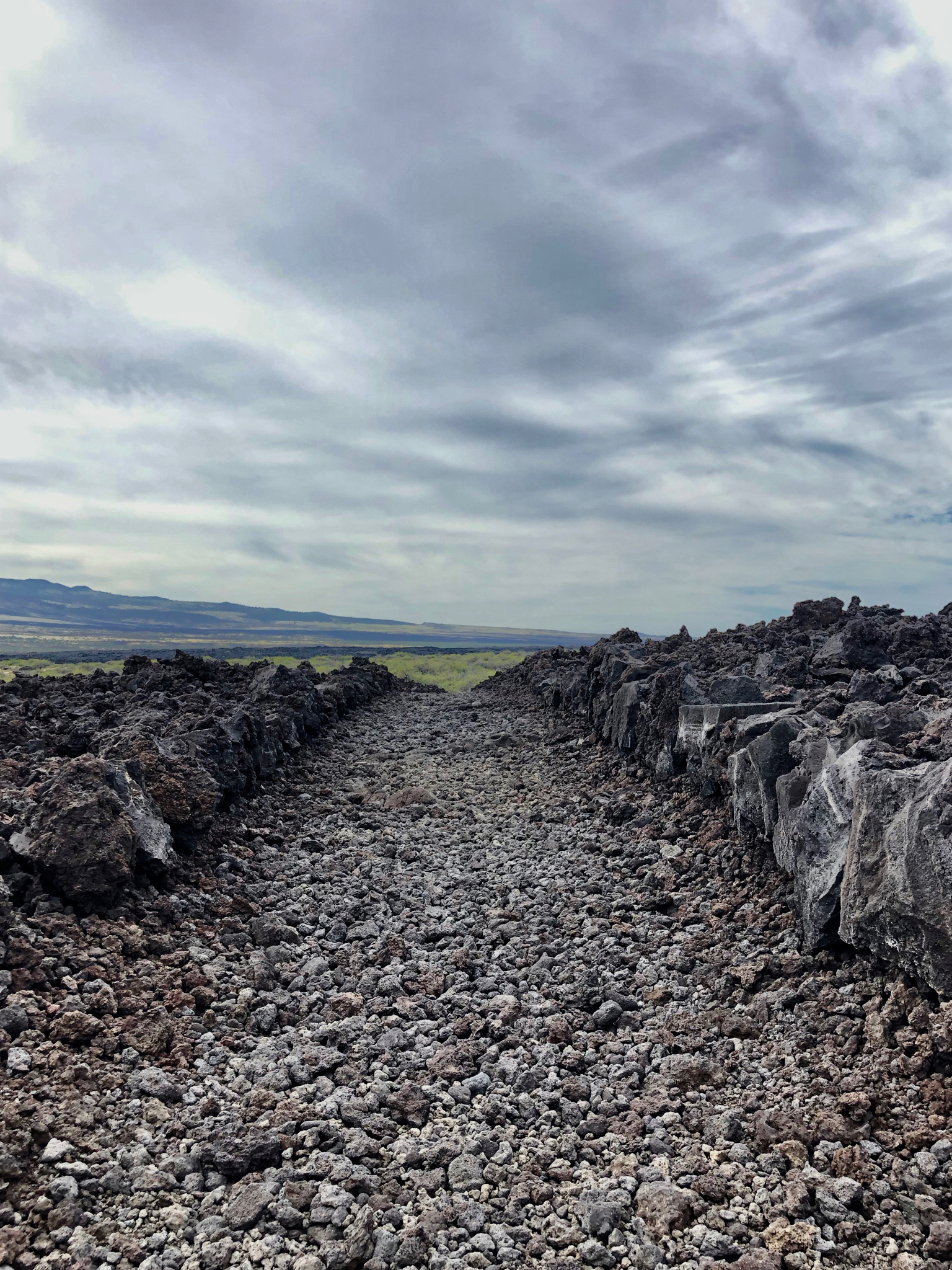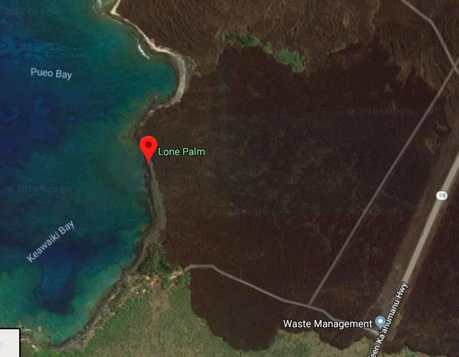 We hiked north, past the palm, and intended to go around the rocky point at the north end. The scramble across the lava looked intimidating, so we checked the map, and saw that there was a trail that went north, if we backtracked a little ways on the trail we came in on. Note that the trail is rough and entirely on the lava. Good shoes and plenty of water are recommended.
