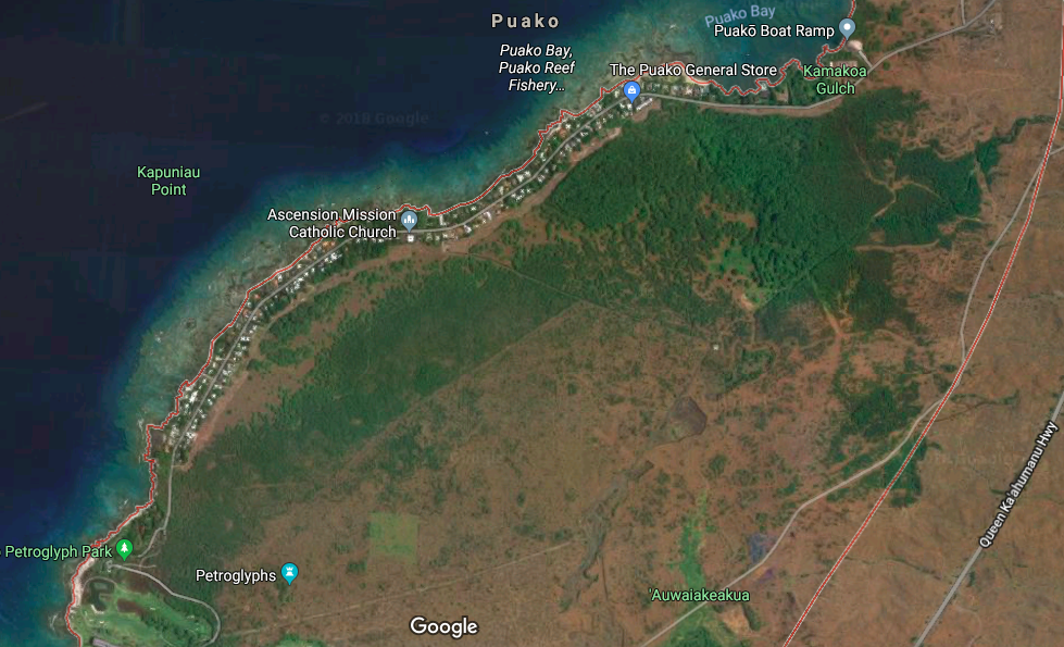 After lunch at the condo, Gretchen and I piled into the Silver Whale, and pointed the wheels north. Our first stop was a little residential strip along the shore that looked like Hawaii to me. It is loosely identified as Puako (although Google maps and Apple maps quibble about that). Expensive properties water side, less expensive across the road. Lots of shoreline access, however, not much actual beach. Mostly tide pools and rocks. There was a boat launch ramp at the north end of the town.