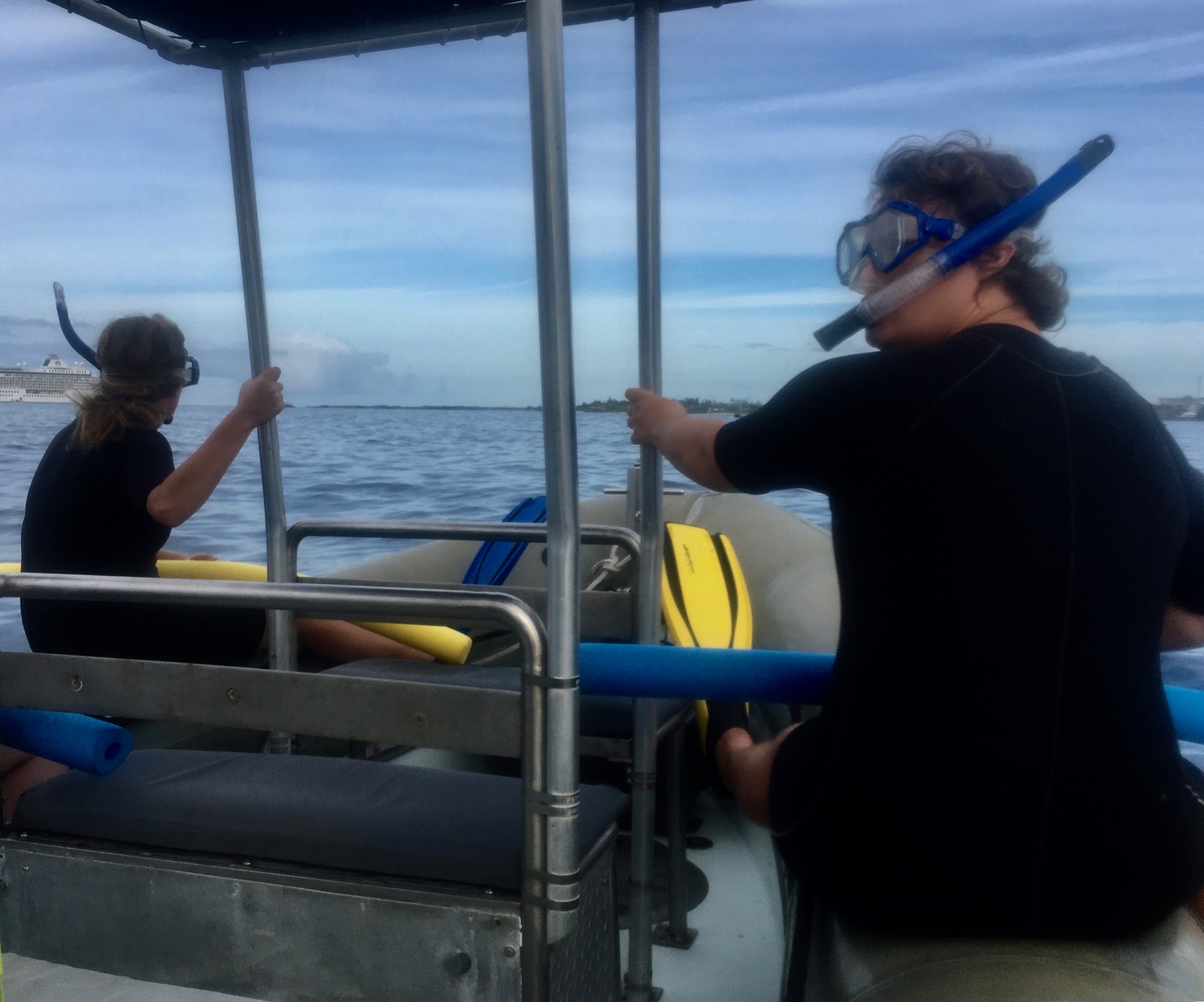 Soon we were motoring south towards our snorkeling spot near the Captain James Cook monument. On the way Bambi pointed out the sights on shore, talked to us about the boats, talked about her travel plans. She shared that the boats that they used were Navy Seal surplus hard-bottom inflatables with big diesel engines. They had bought the boats and refurbished them for use in their tour business. They certainly seemed liked seaworthy vessels.