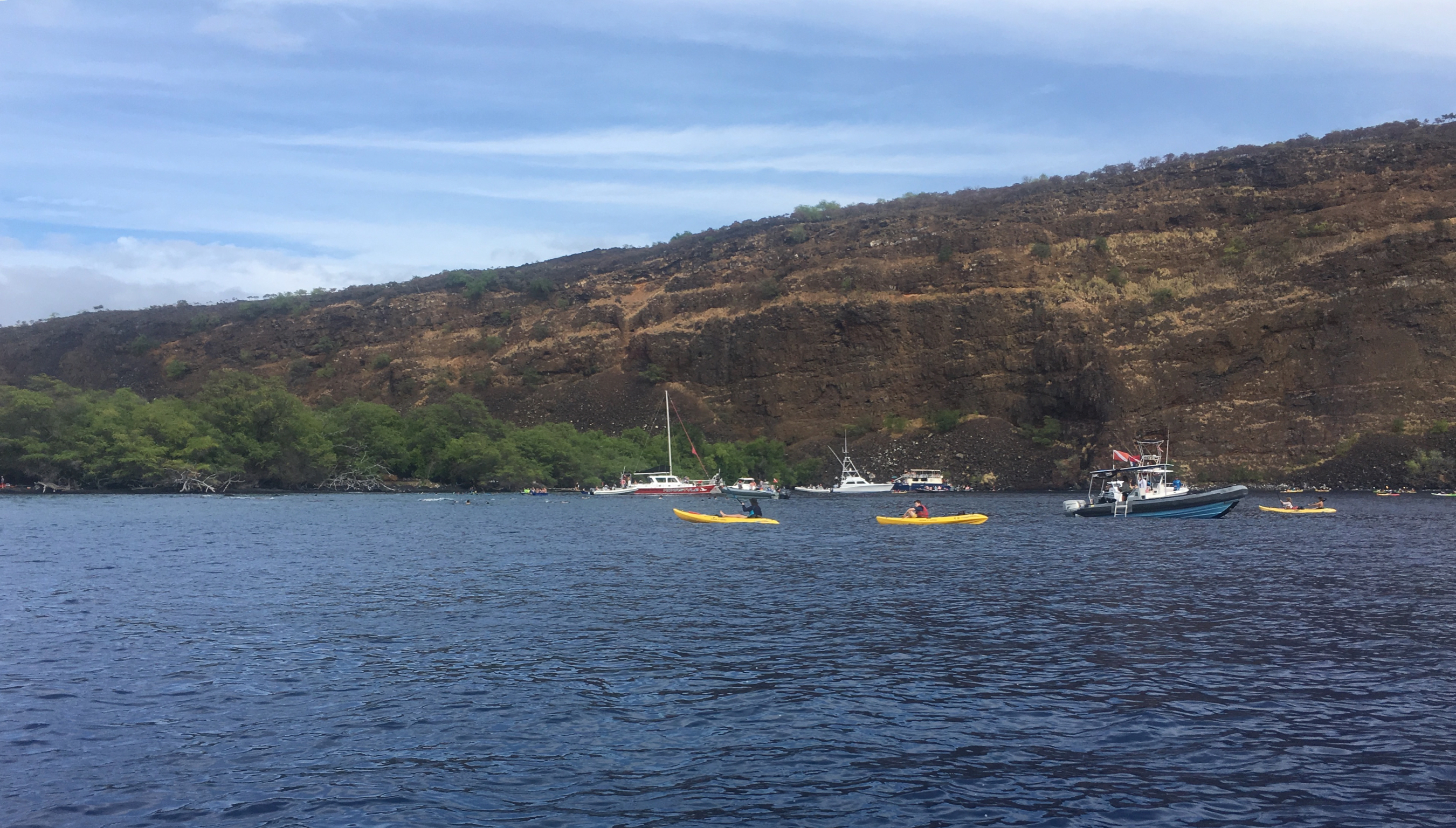 We make the turn around the point into Kealakekua Bay. The Kealakekua Bay State Historical Park and the Captain James Cook Monument are both located in the protected northern side of the bay.