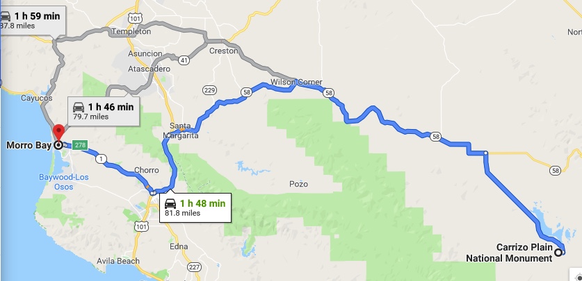 Day 1 – Grapevine to the Carrizo Plain and on to Morro Bay