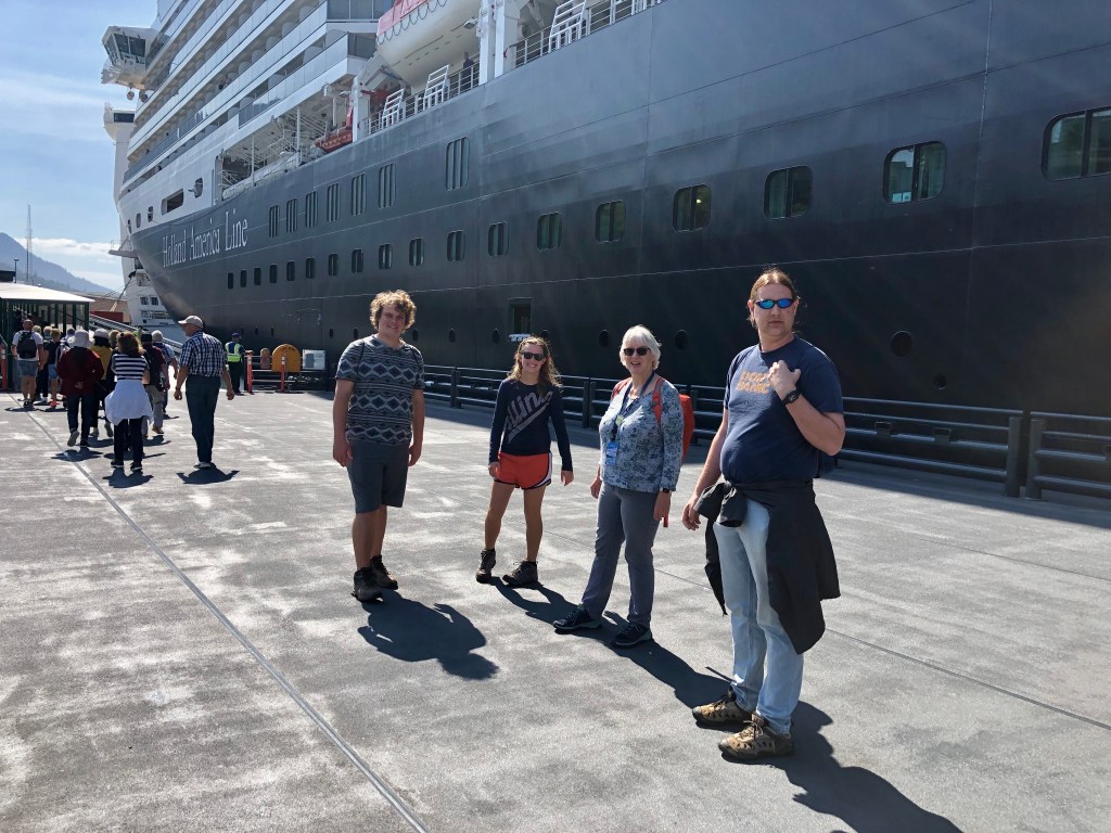 Since we only had a short time on shore unchaperoned, we chose to disembark soon after they dropped the gangway. I managed to get everybody to stand for a photograph before we actually left the docks.