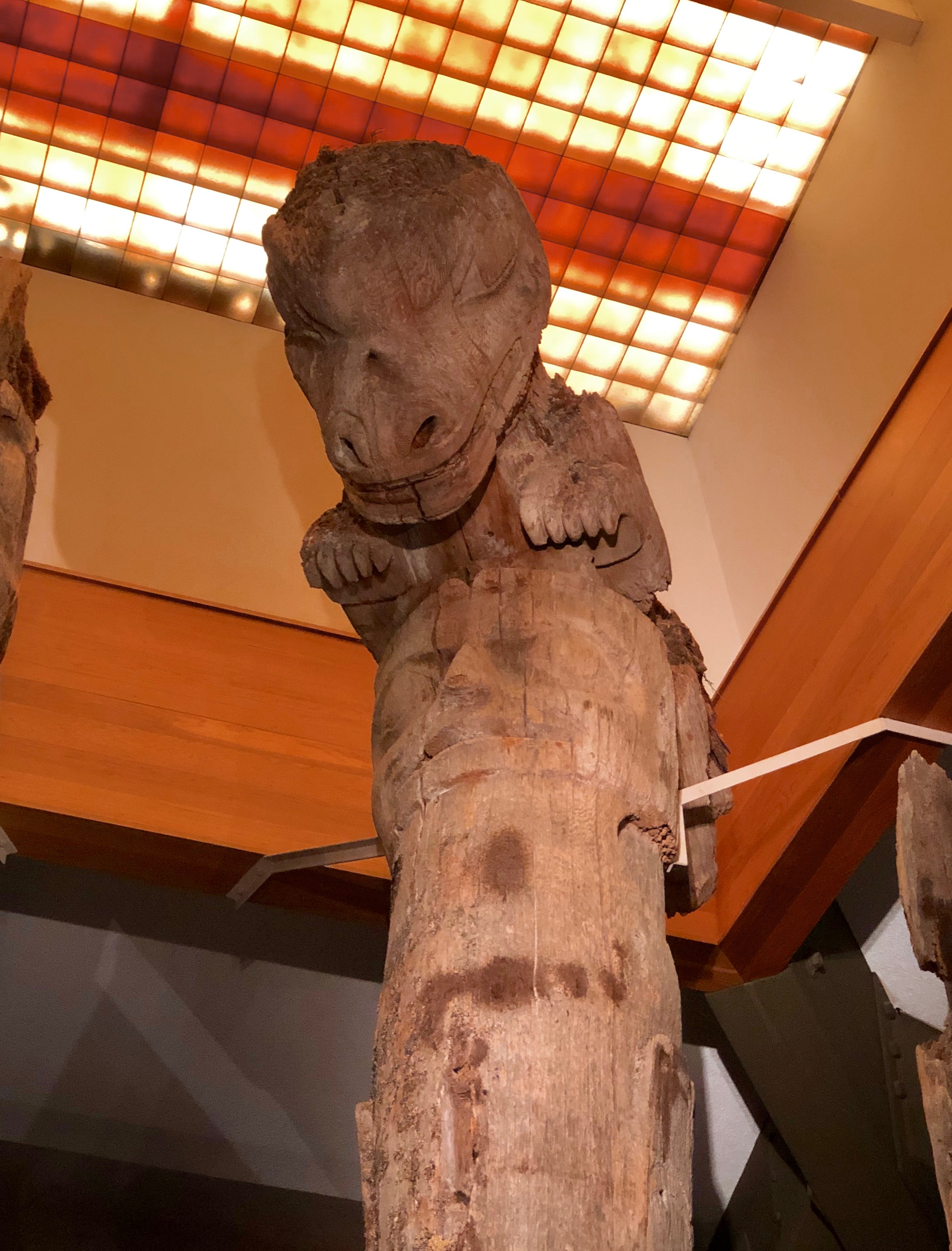 We all found the the Center interesting. There were many totem poles and other examples of heritage crafts displayed. In one of the back rooms was literally a stack of old totem poles lying down in a glass (I assume climate controlled) display case.