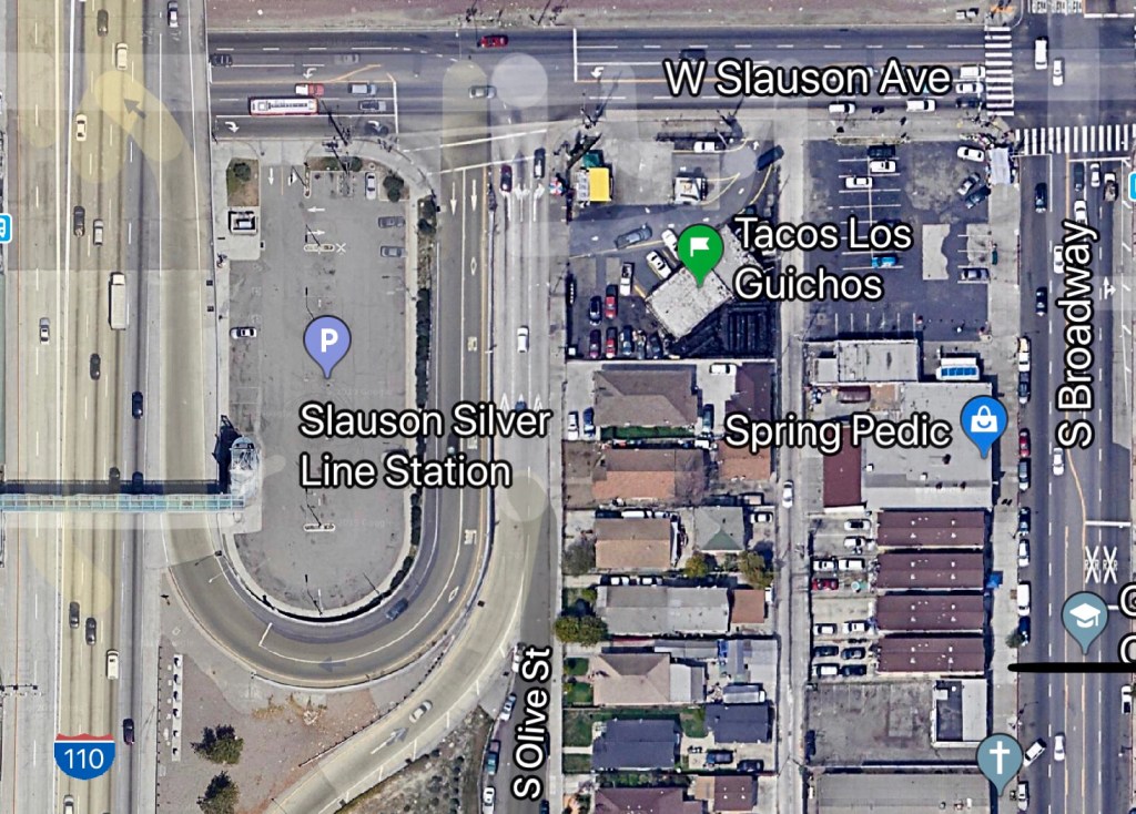 Tacos Los Guichos is not a place I would have tried without the glowing recommendation from LA TACO. The location is just off the 110 freeway on Slauson. The restaurant itself is a trailer parked, more or less permanently, in the fenced parking lot of a tire and wheel store. It is actually the yellow roof you see in the map photo below, not the building the pin is dropped on.
