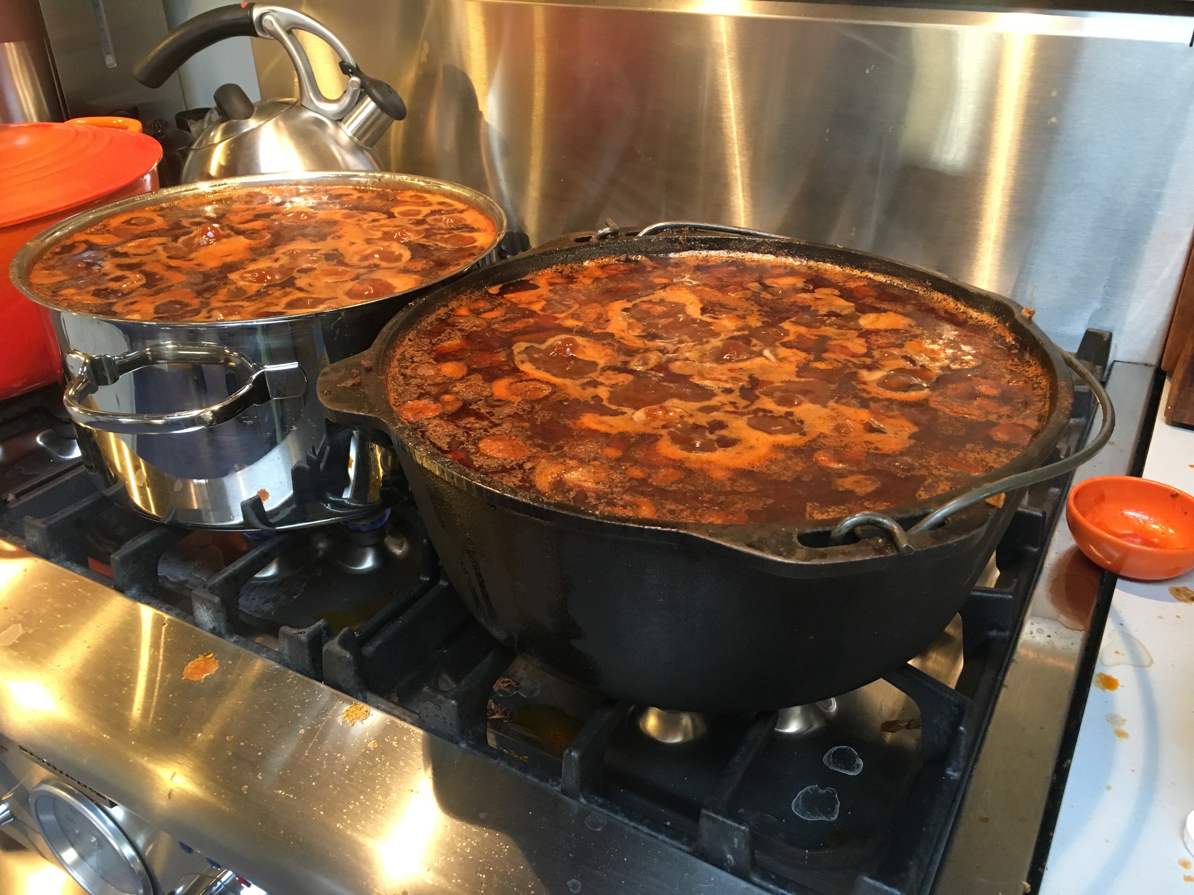 Every Christmas Eve for over 20 years, Gretchen and I host a dinner party for friends and family. The group can be quite large (up to 30 guests) and is a blast. I (almost) always have made a huge pot of Chili to warm everyone up. Gretchen makes a separate pot of soup, guests bring wine and beer, and we have a grand time. Every year the chili was different because I made it up as I went along.