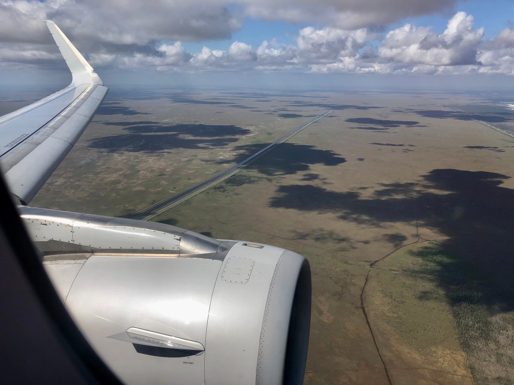 This flight was a little more exciting. It was in a smallish 30 to 40 person prop job. Something I hardly ever get to ride in. It also flew at lower altitude so it was easier to survey the ground below us.