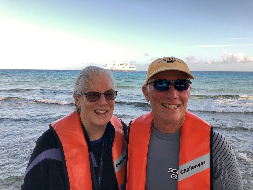 First let me mention that I was having gear issues that had nothing to do with Lindblad. I had chosen poorly as the saying goes. I couldn’t get the camera/phone thingy to work, I had improperly sized my fins, and my snorkel was a disaster. I wasn’t a happy camper. Gretchen loved the spot. Her experience was that this was the largest variety of fish, coral, and sponge types she had ever seen.
