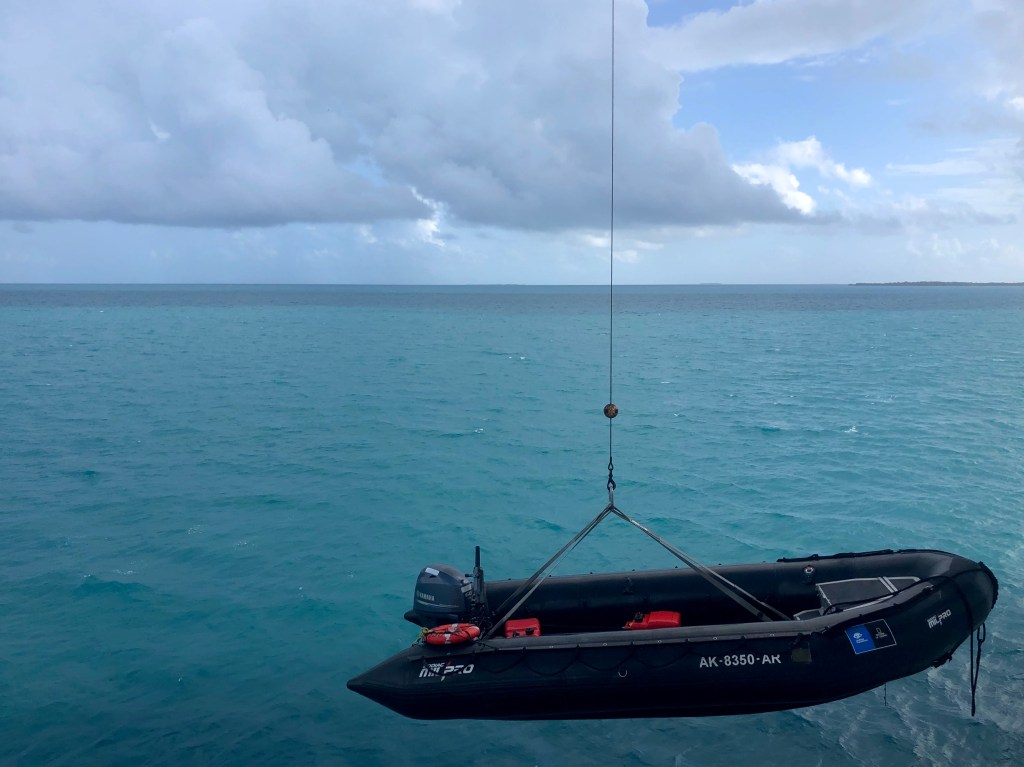 At around 10am, the Expedition Team, convened a meeting n the lounge to discuss the situation and let us know what was going on. They were searching for alternative snorkel spots and Zodiac tours for us to do, as the ship headed through the passage to the south of the Turneffe Islands group.