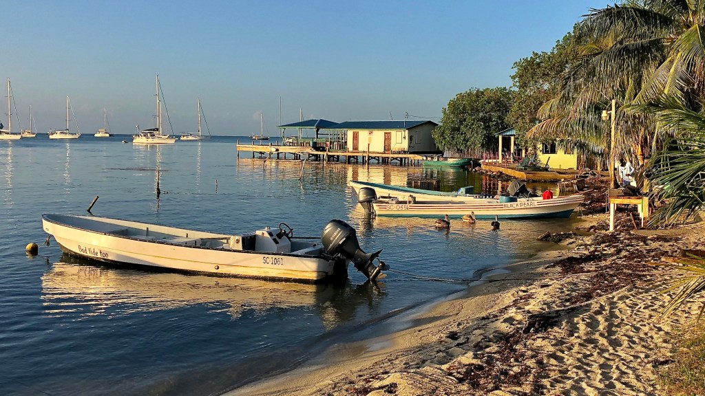 The trip to the town dock in Placencia was just as the sun was coming up. A perfect time for pictures. It was a really pretty morning.