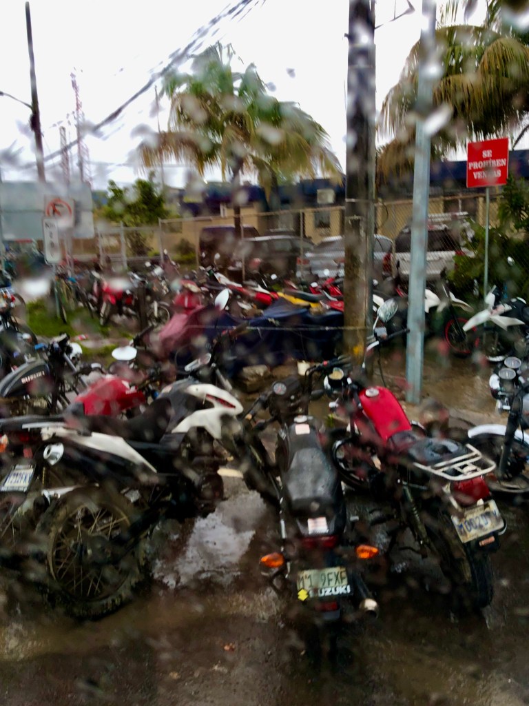 It was still raining and there weren’t many people on the roads. Most of the motorcycles we had seen on the way in were now parked by the sides of the road.