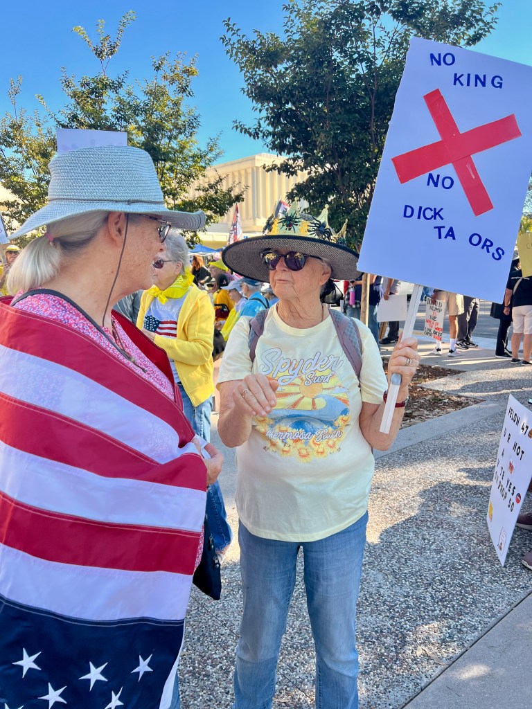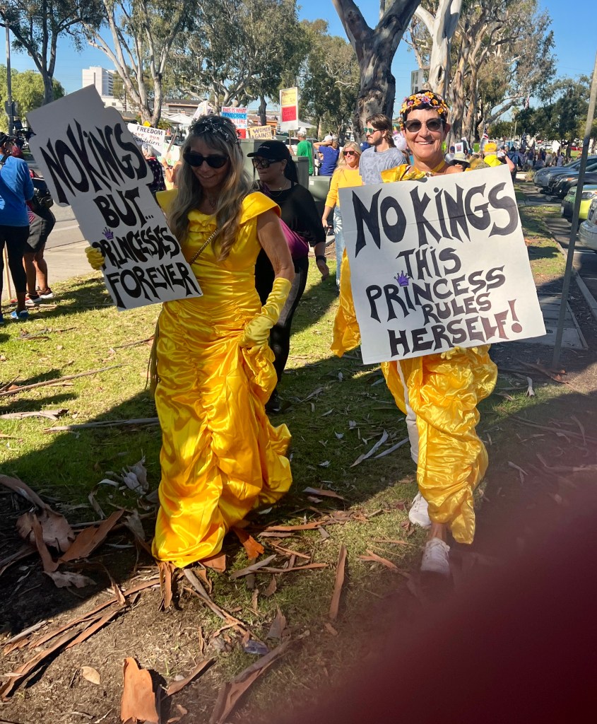 What a day! I attended the Torrance CA No Kings Protest with several thousand other people (my estimate, totally unverified). We had a blast. My only costume was a t-shirt that communicated that all were welcome here.